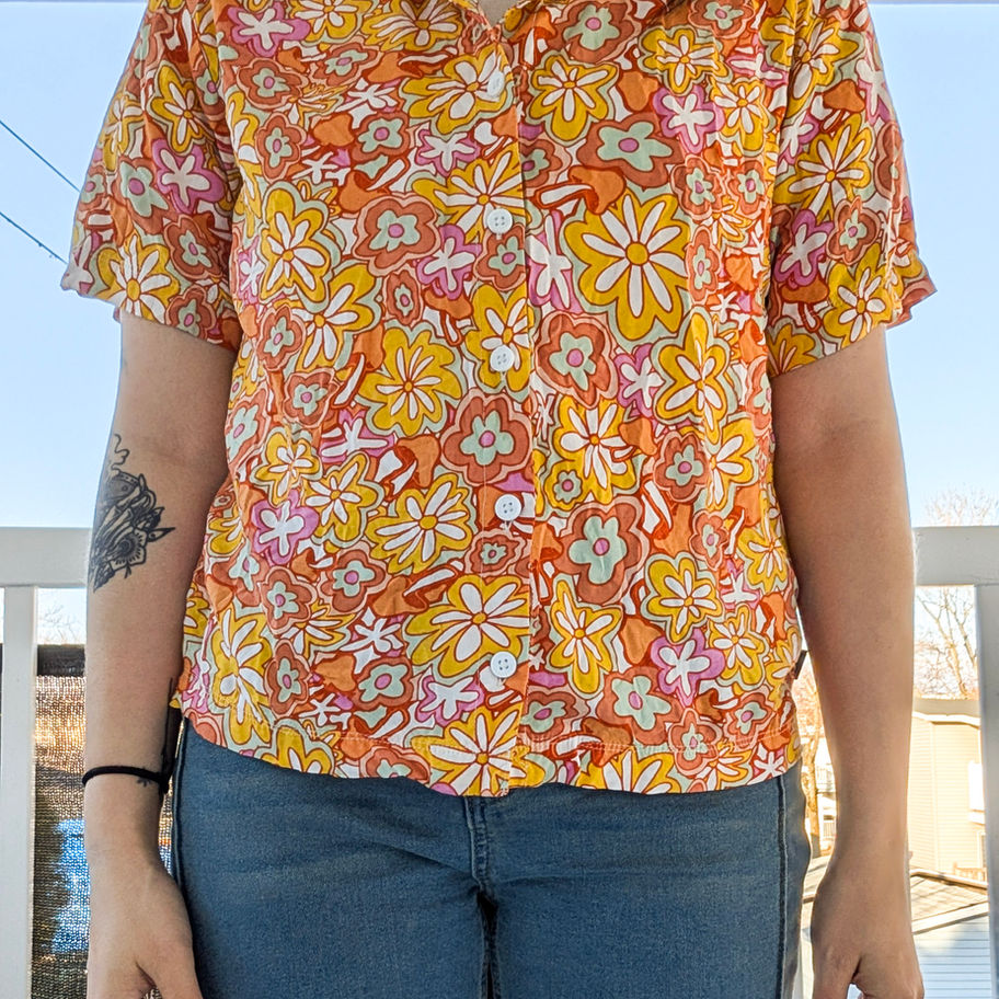 Chemise Vans fleurie rétro – motif floral orange