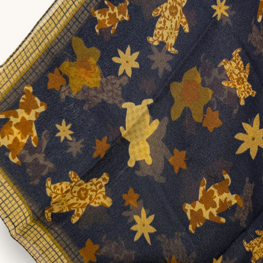Foulard vintage carré à motifs oursons & fleurs – bleu marine