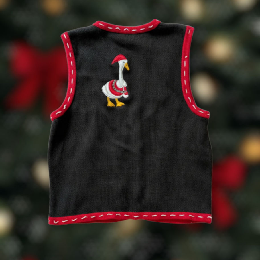 An absolutely iconic Christmas sweater, perfect for the season's humorous, cozy, and vintage looks. With its adorable ducks dressed up for the holidays, embroidered snowflakes, and contrasting red trim, it's THE perfect piece for an ugly Christmas sweater party… the cute version.