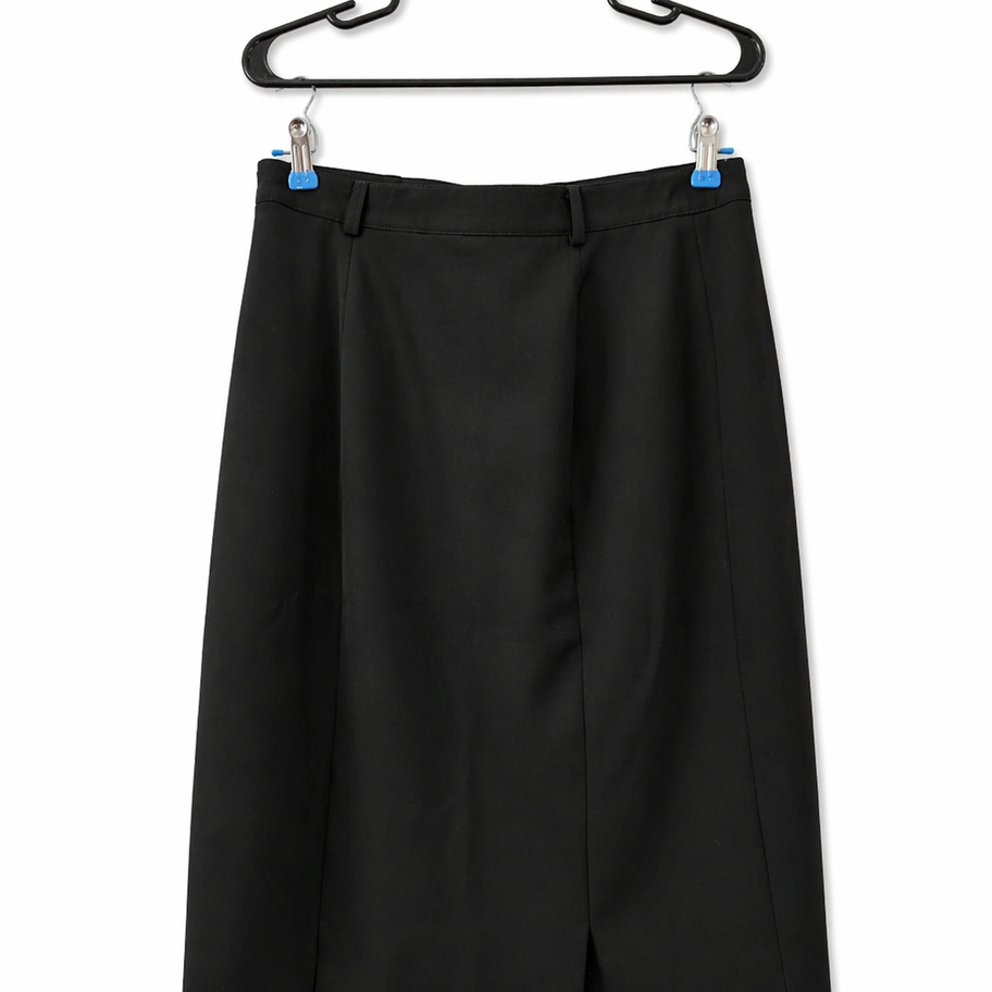 Jupe noire LUCIA à la coupe élégante et intemporelle. Une pièce classique avec une taille structurée et des plis subtils à l’avant qui apportent une belle fluidité au mouvement. Sa silhouette légèrement évasée offre un look chic tout en restant confortable. Parfaite autant pour le bureau que pour une tenue plus habillée, elle s’agence facilement avec tout.