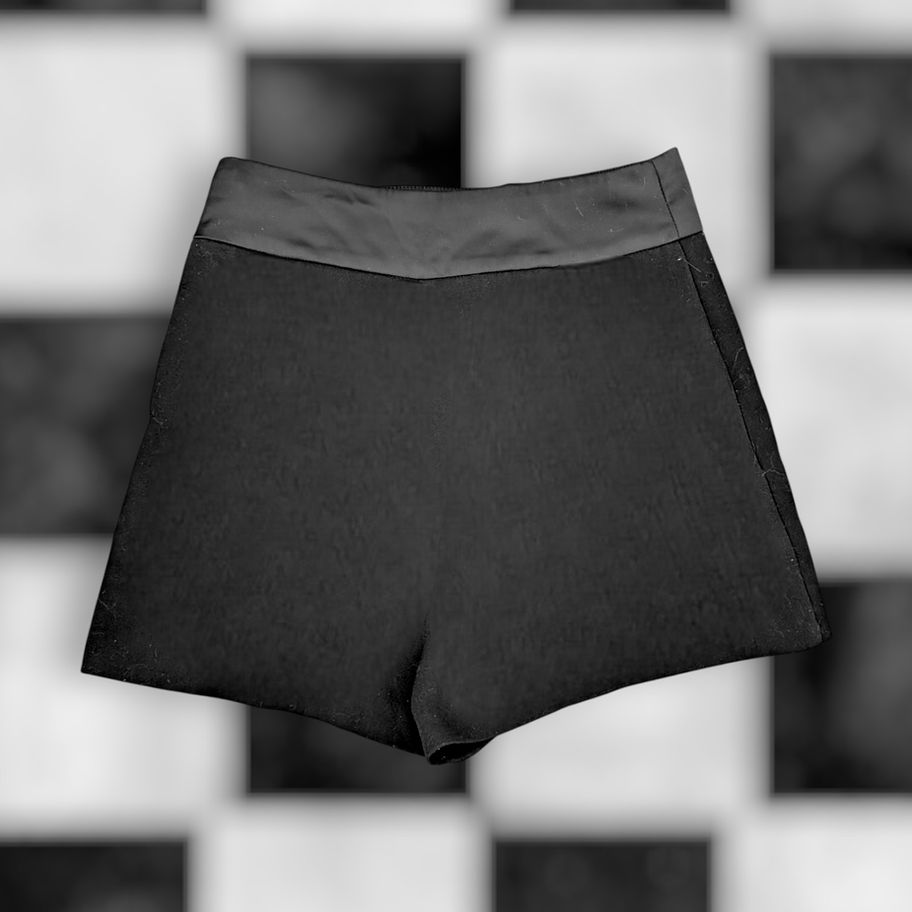Elegant black skort with a crossover front panel for a super flattering skirt effect, while maintaining the comfort of shorts. High-waisted, minimalist cut and soft fabric: perfect for going out, for a chic look or for layering with tights.
