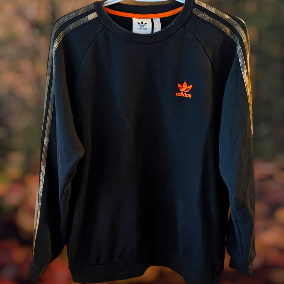 Crewneck Adidas noir avec logo orange et bandes camouflage