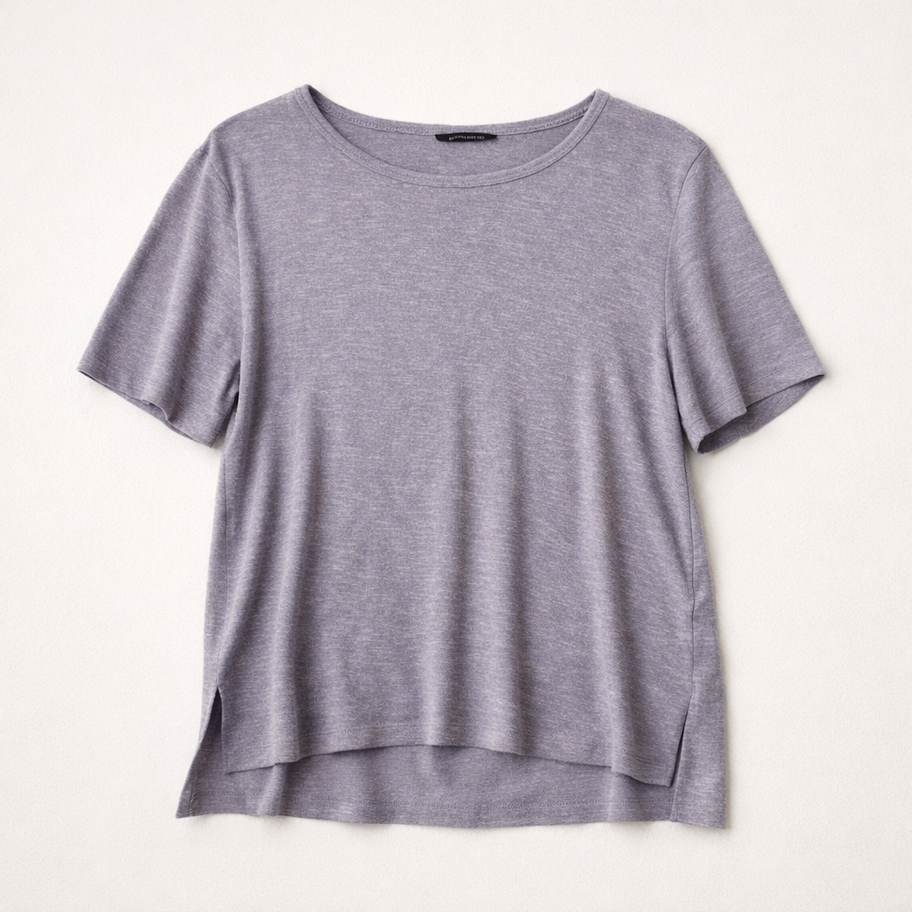 Haut mauve à manches courtes signé Banana Republic, confectionné dans un tissu doux et fluide qui offre un tombé léger et confortable. Sa coupe décontractée avec ourlet légèrement plus long à l’arrière apporte une silhouette flatteuse et moderne. Une pièce minimaliste et élégante, parfaite pour un look soigné sans effort, au travail comme au quotidien.