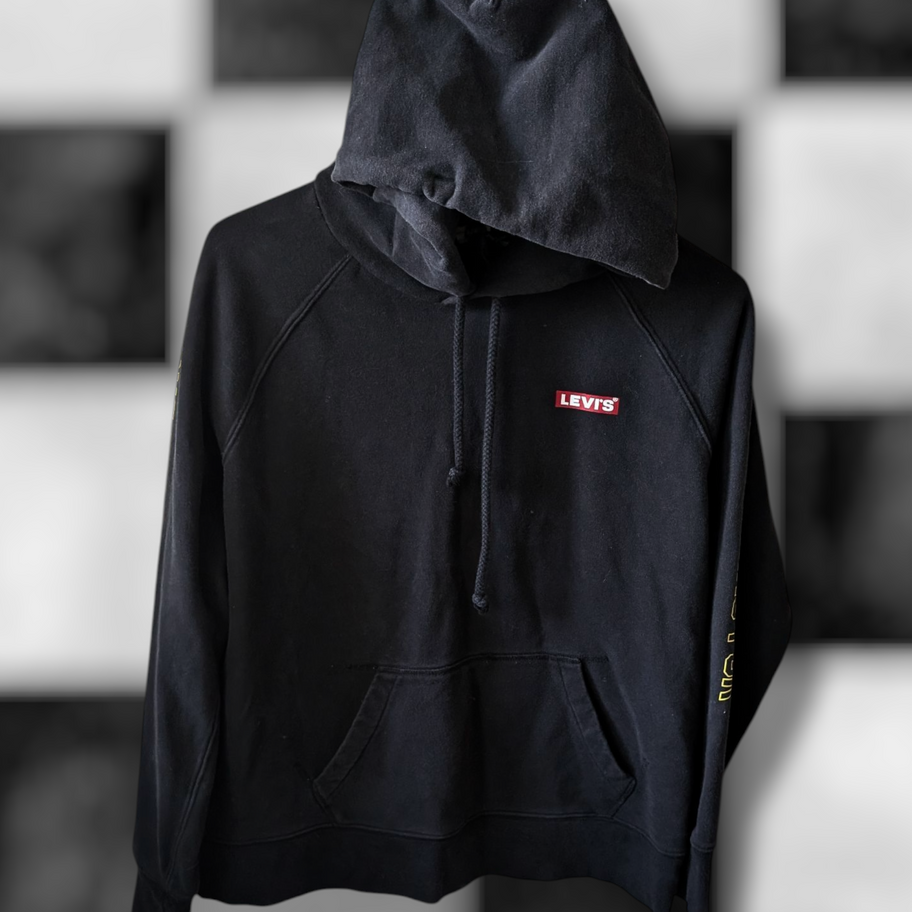 Un hoodie collector qui unit l’univers culte de Star Wars au style indémodable de Levi’s. Logo Levi’s à l’avant, manches imprimées de la réplique culte “These aren’t the droids you’re looking for” en jaune, et grand visuel iconique de C-3PO et R2-D2 au dos. Une pièce rare, parfaite pour les fans de la saga comme pour les amateurs de streetwear audacieux.