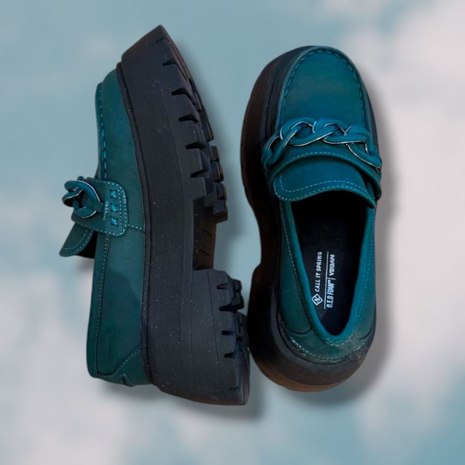 Ces souliers plateformes de la marque Call It Spring sont une vraie pépite pour les amoureuses de style rétro et éthique. Fabriqués à partir de matériaux 100 % vegan, ils combinent look affirmé et respect de l’environnement. Leur teinte turquoise éclatante apporte une touche de fraîcheur et d’originalité à n’importe quelle tenue. Parfaits avec une robe fluide ou un jean mom, ces souliers sont à la fois confortables, stylés et écoresponsables.